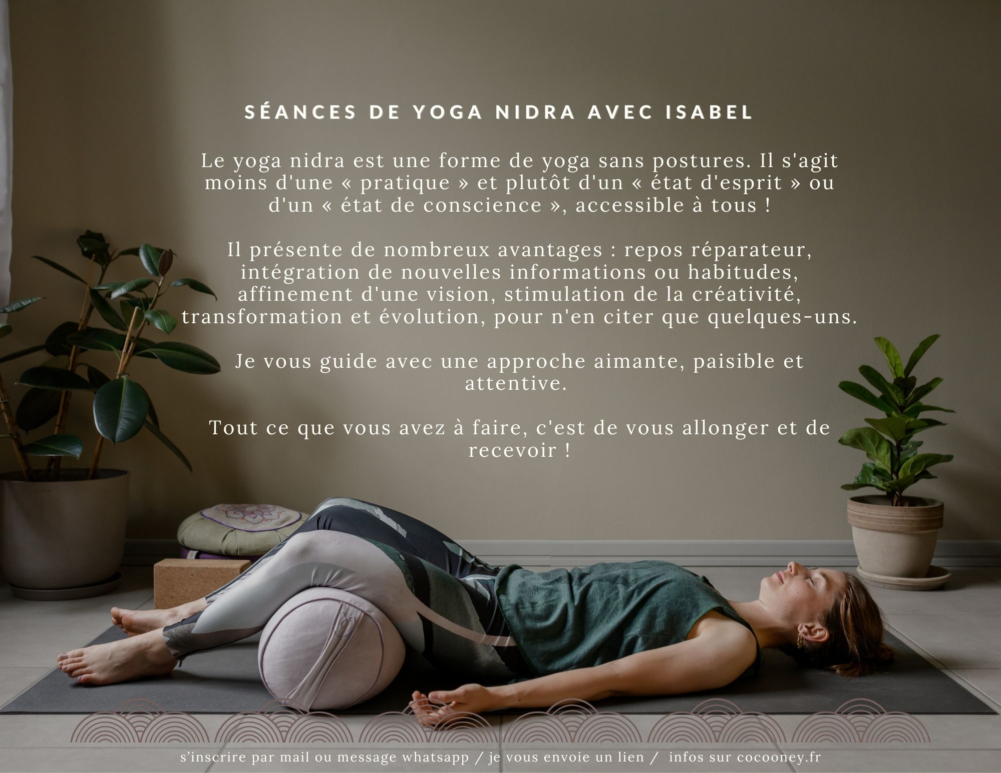 Plongez avec moi dans l’univers du yoga nidra ! La liste de ses bienfaits est extrêmement longue et comprend notamment l’apaisement du système nerveux, une amélioration dans vos capacités d’apprentissage et de mémorisation, ainsi que l’intégration plus profonde de nouvelles habitudes/intentions.